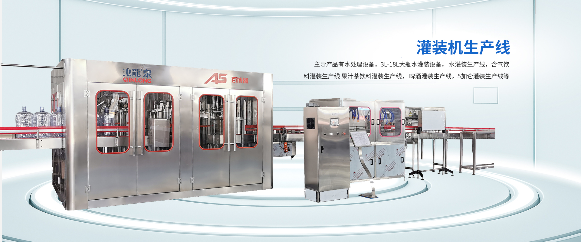 公司主導(dǎo)產(chǎn)品有水處理設(shè)備,3L-18L大瓶水灌裝機(jī)設(shè)備, 水灌裝生產(chǎn)線,含氣飲料灌裝生產(chǎn)線, 果汁茶飲料灌裝生產(chǎn)線, 啤酒灌裝生產(chǎn)線,5加侖灌裝生產(chǎn)線等。能夠配套整個生產(chǎn)線